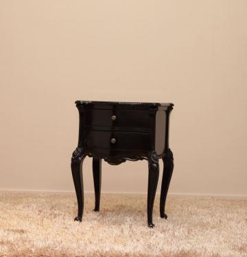 This two drawer bedside table with black finish is currently out of stock. To order only.