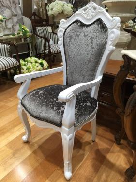 French Style Arm Chair, White Color, Upholstered in Quality Fabric