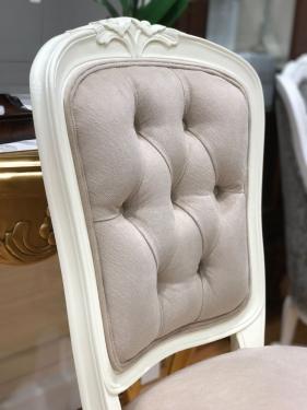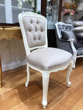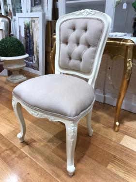French Dining Chair, Cream Color and Upholstered in Cream Velvet, Buttoned Back