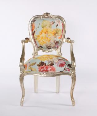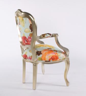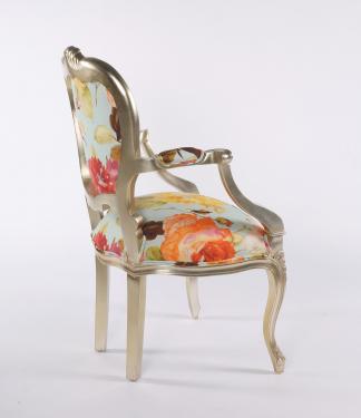 French Armchair, Champagne Leaf Gilded, Upholstered in Quality Floral Farbic from Zepel