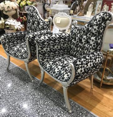 French Arm Chair, Silver and Quality Fabric Left Version