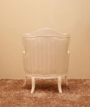 This Wing Chair, White Color upholstered in White Stripes Fabric and comes with separate seating cushion.