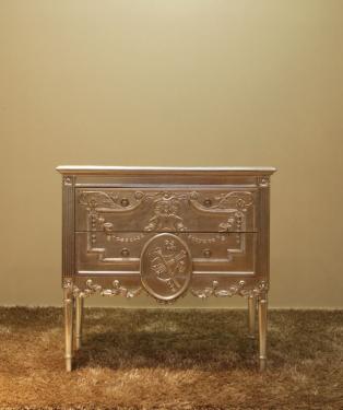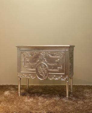 The dutch chest is carved but graceful and classy due to the plated silver coverage. Out of stock. To order only.