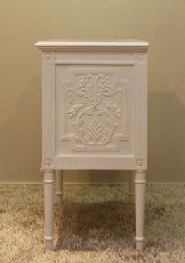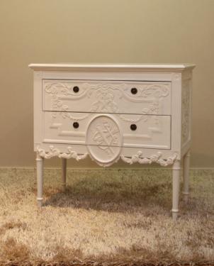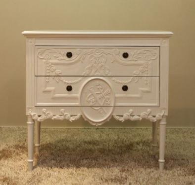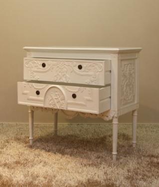 The dutch chest is carved but graceful and classy with an antique white finish.