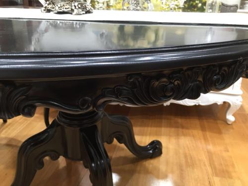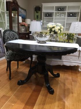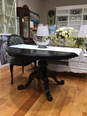 French Round Dining Table, Painted in Black, Diam (Ø) 130cm, with Pedestal Foot and Carvings on Table Edge