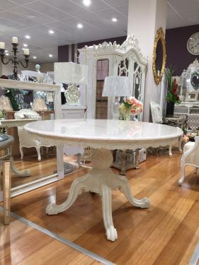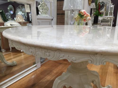 French Round Dining Table, Dia. 130cm,Cream Color, Carved Table Edge, Pedestal Foot and with quality Marble Top