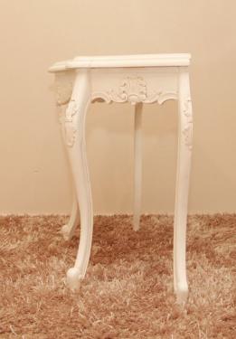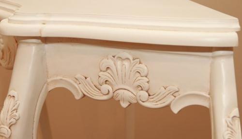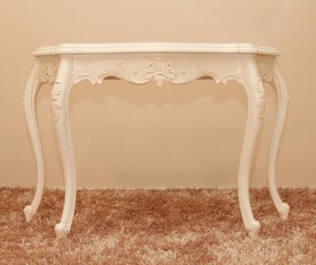 This Serpentine Hall Table has a curved table platter creating a modest elegance. It comes with a white finish.