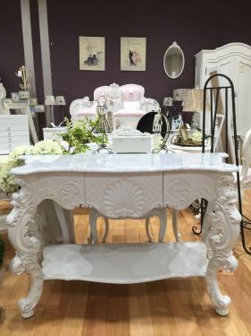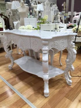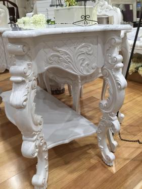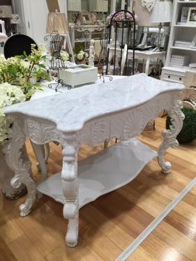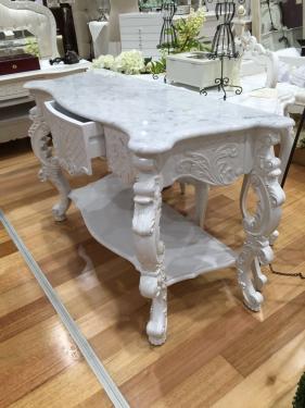 French Hall Table, with Drawer, Shelf, White Color and Quality White Marble Top