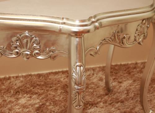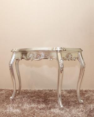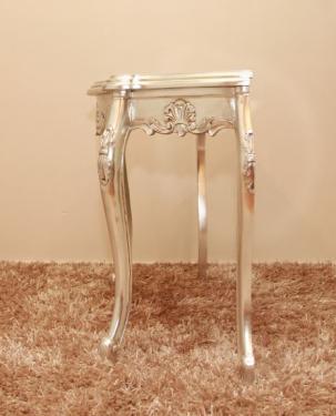 This Serpentine Hall Table has a curved table platter creating a modest elegance. It comes in a silver finish.