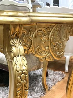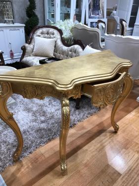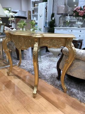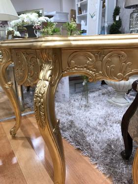 Finished in Gold Leaf. This Console is also available in Cream or White color at $1,195-. Please call to inquire further details