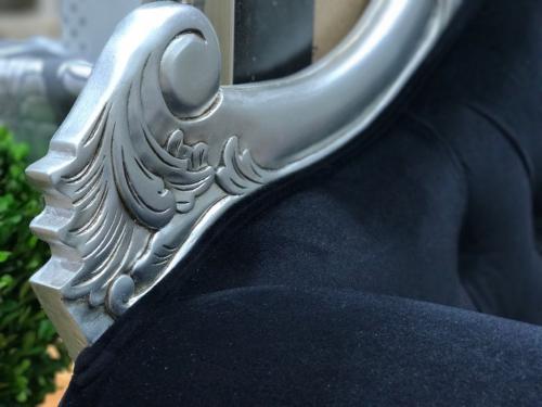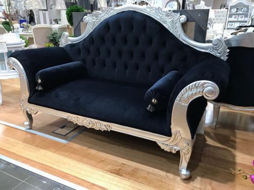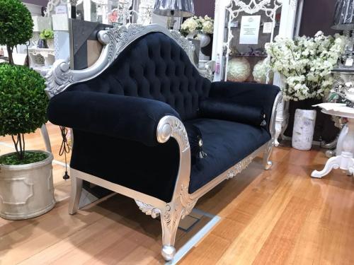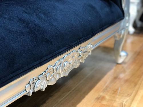 French Style Lounge, 2 Seater, Silver Gilded, Black Velvet Upholstery.