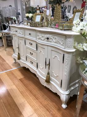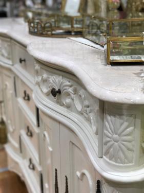 French Sideboard with 4 Doors and 6 Drawers, Cream Color and Cream Marble Top