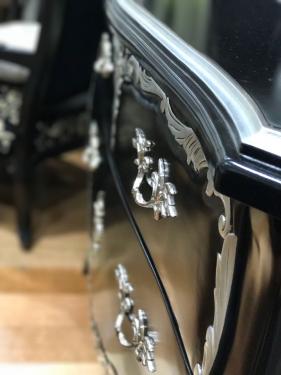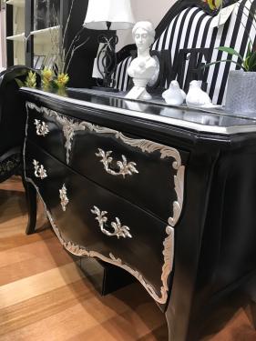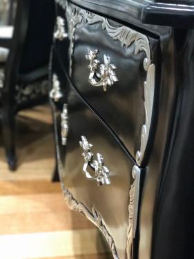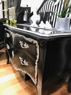 French Commodes, with 2 Drawers, Black & Silver