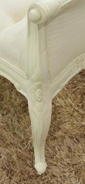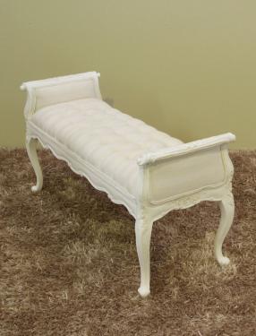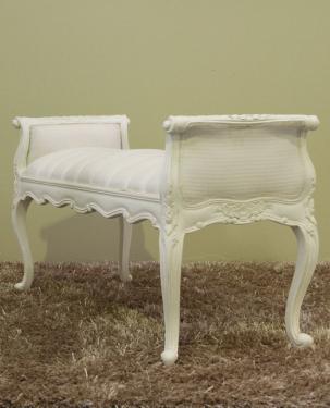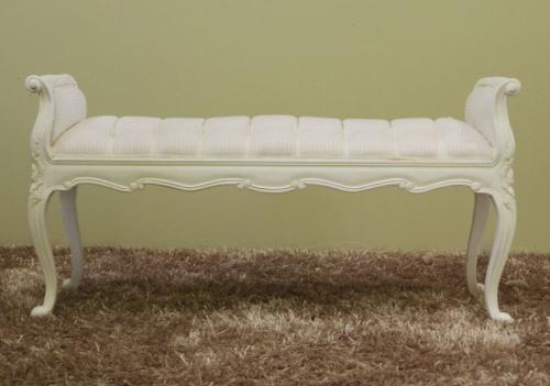 French Style Bedend Stool, Standard White Stripe Fabric Upholstery.