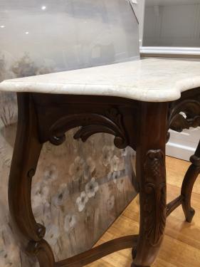 French Style Console Table with Quality Marble Top, Polished Timber